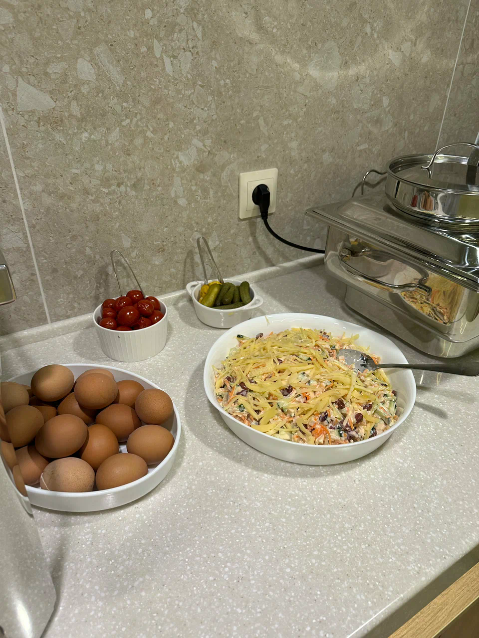- Свежие салаты, сезонные овощи и фрукты, включая местные сорта