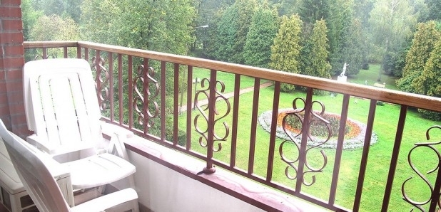 В номере: две 1,5-спальные кровати, тумбочки, бра, коврики, туалетный столик, два встроенных платяных шкафа, ТВ, кондиционер, радио, выход на балкон (летняя мебель).