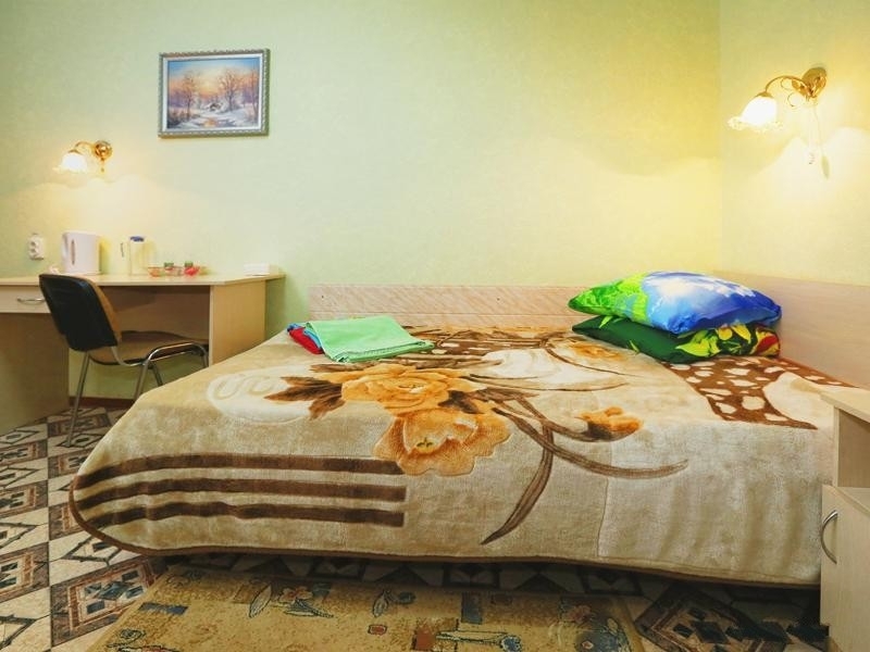 Оснащение номера: полутораспальная кровать, стол, стул, тумбочка, шкаф, телевизор, холодильник, доп.место - евро раскладушка и размещение ребенка до 5 лет без места