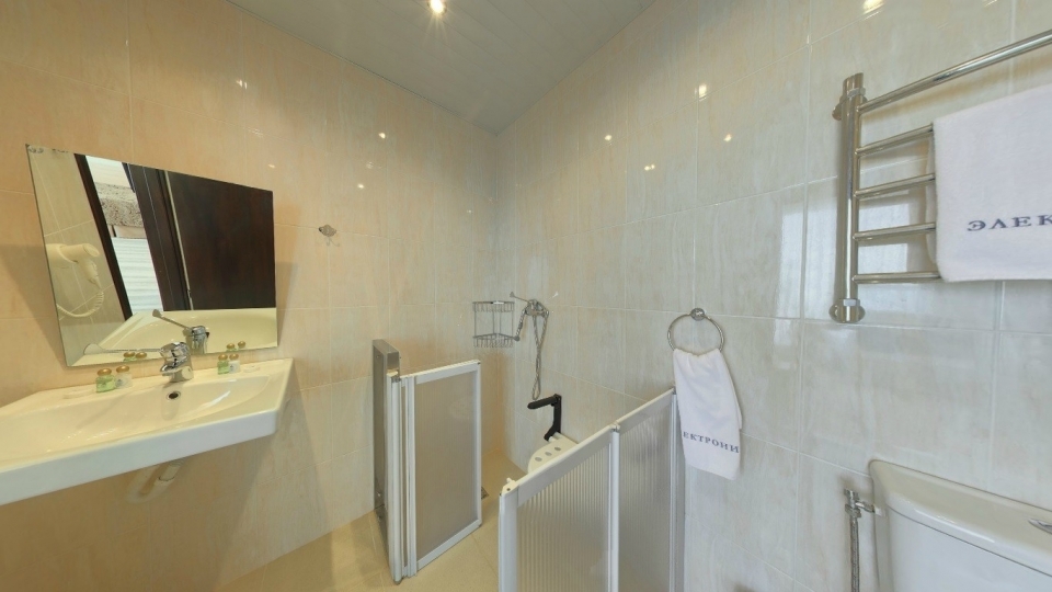 Санузел: 1 этаж - санузел, 2 этаж - объединенный с душевой кабиной, средства гигиены