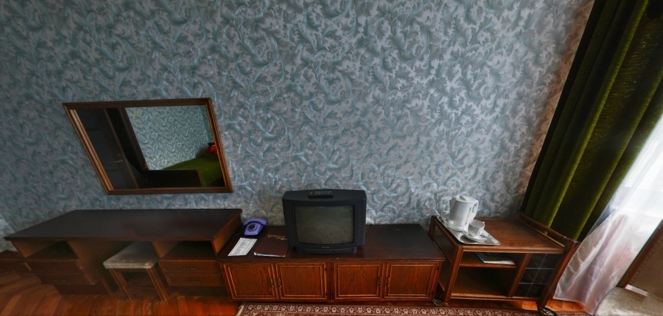В номере: Кресло, диван, 2 кровати, торшер, шкаф, холодильник, телевизор, телефон, электрочайник.